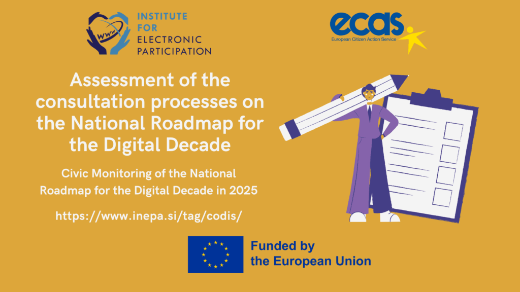 Project “Co-creating Digital Policies in Slovenia Phase III” receives funding by European Citizen Action Service (ECAS) in the framework of the EURECA 2025 project, which is co-funded by the European Union. Views and opinions expressed are however those of the author(s) only and do not necessarily reflect those of the European Union or ECAS. Neither the European Union nor ECAS can be held responsible for them.